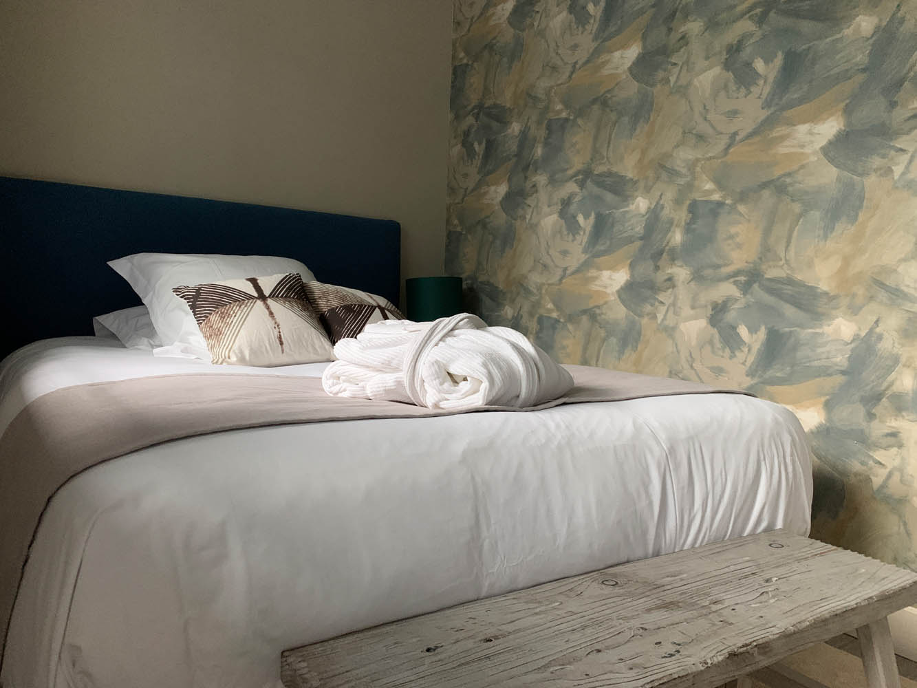Chambre individuelle avec un lit double, une salle de bain et WC privé