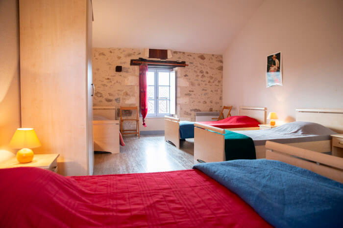 Chambre partagée avec lits simples, une salle de bain et WC partagés